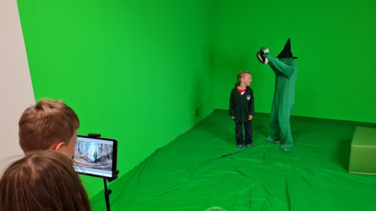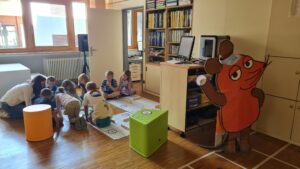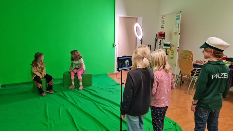 Das Schulmedienzentrum Oberallgäu beteiligte sich am 03.10.2023 wieder an “Türen auf mit der Maus”. In der Greenscreen-Gruppe unter Leitung von Doris Sippel ging es “magisch” zu. So umarmten die Kinder virtuell die große Maus für ein Foto, sie flogen filmisch ganz frei durch und über Wolken, waren Nachrichtensprecher und entwickelten in Kostümen eine eigene Geschichte – im Hintergrund mit ganz unterschiedlichen Drehplätzen. Die Besucher lernten somit viel über die Tricks der Filmwelt, wie einfach es sein kann, Bilder zu verändern und an ganz andere Orte zu reisen.