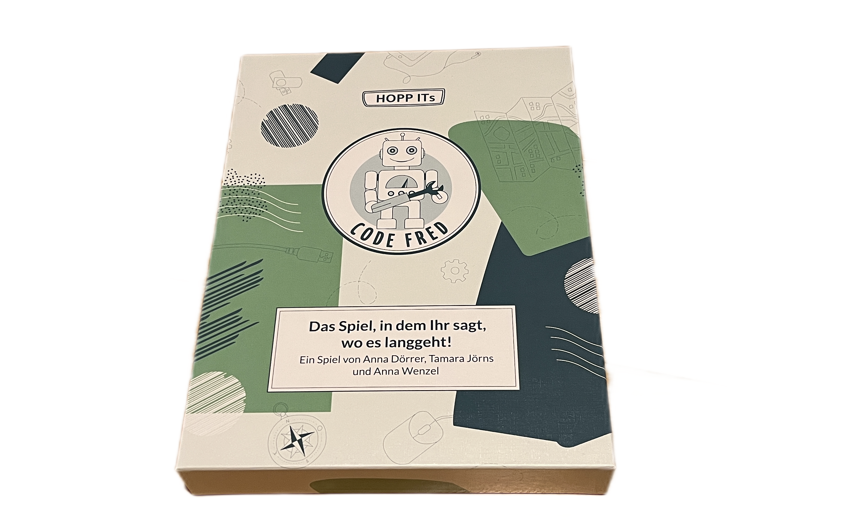 “Code Fred” ist ein für Schülerinnen und Schüler (SuS) konzipiertes Kartenspiel, das die Grundkonzepte der Programmierung thematisiert. Die SuS verfolgen das gemeinsame Spielziel, den Heinzelroboter Fred durch die Wohnung zu lotsen. Dazu wird mit den Spielkarten ein Pseudocode gelegt. Das Spiel durchläuft fünf Schwierigkeitsstufen.” (Quelle: https://www.hopp-foundation.de/unterrichtsmaterial/zum-bestellen/informatikspiel-code-fred/#)