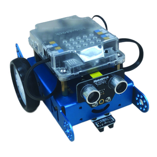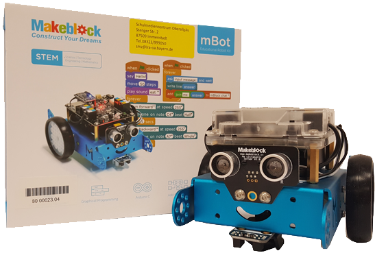 Der mBot ist ein Roboter-Bausatz, der aus einem Aluminium-Chassis, verschiedenen Sensoren und elektronischen Bauteilen besteht. Die dazugehörige mCore-Platine basiert auf dem Arduino Uno, die Programmier-Software am Computer basiert auf Scratch. Die folgenden Funktionalitäten können programmiert werden: