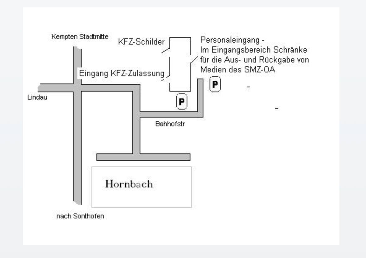 Dieser fährt immer dienstags und donnerstags gegen 11:00 Uhr am Schulmedienzentrum los und beliefert die Gemeindefächer an der Zulassungsstelle in Kempten. Die Abholstelle in Kempten ist geöffnet von Montag bis Donnerstag von 7.00 bis 17.00 Uhr und am Freitag von 7.00 bis 12.00 Uhr.