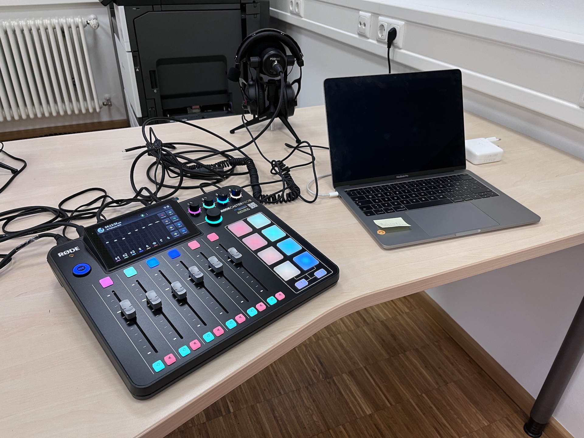 Wir haben den Rodecaster im Medienzentrum aufgebaut, ihr könnt direkt vor Ort mit 4 Sprecher:innen eure Sendungen aufnehmen. Oder ihr packt alles ein und produziert in Ruhe bei euch an der Schule oder in der Einrichtung. Ganz wie ihr wollt.
